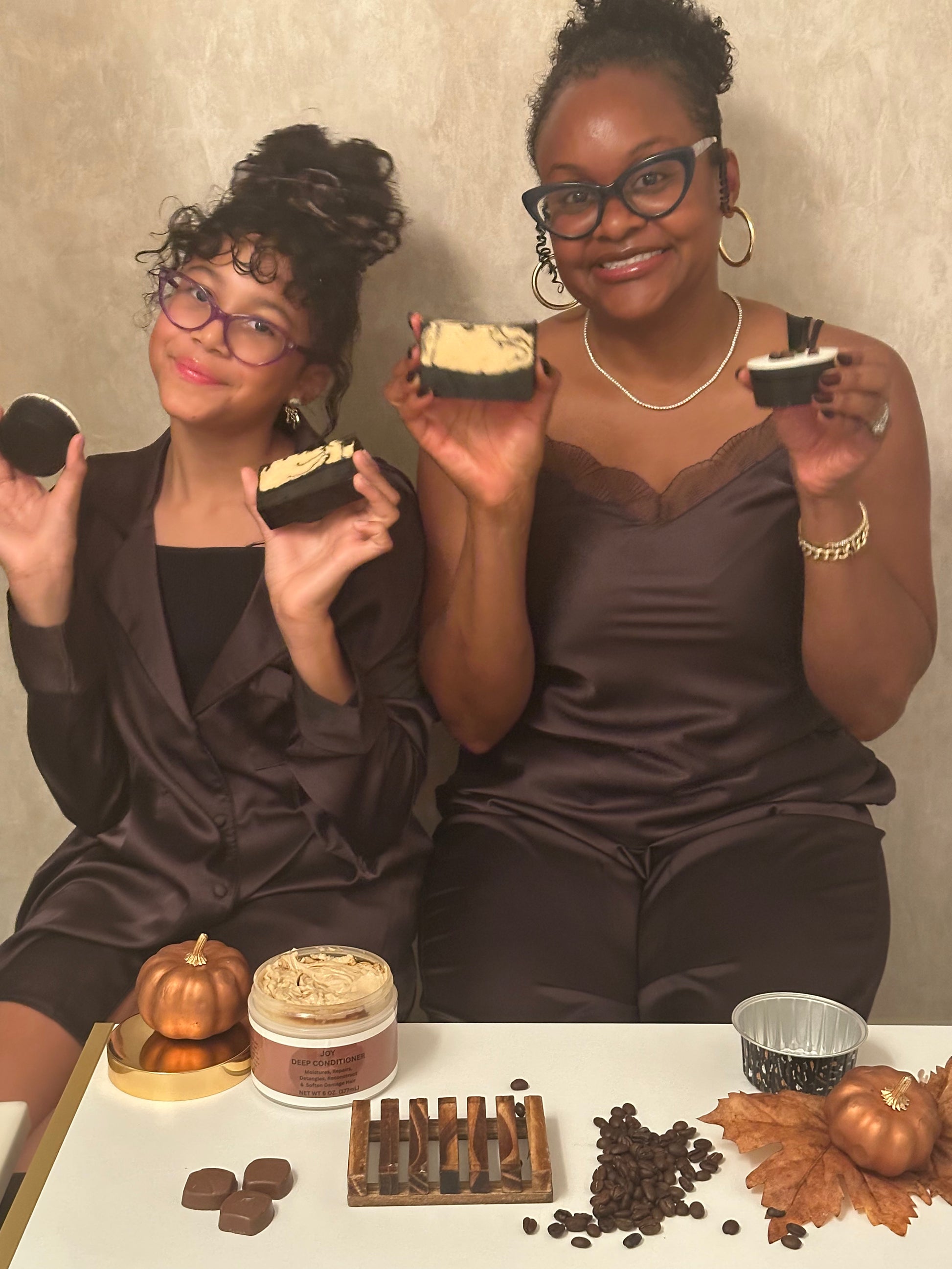 Glycerin Base, Organic Dark Chocolate, Espresso Coffee, Hardwood Charcoal, Colloidal Oatmeal, Organic Cocoa, Organic Black Walnut, Organic Brown Rice, Organic Extra Dark Brown Sugar, Organic Zinc Powder, Goat Milk, Sour Cherries, Organic Ceylon Cinnamon, Organic Nutmeg Oil, Organic Lavender Oil, Organic Clove Bud Oil, Organic Rosemary Oil, Organic Carrot Oil, Kukui Oil, Jamaican Extra Dark Castor Oil, Organic Extra Virgin Coconut Oil, Organic Almond Oil, Vitamin E Oil, Organic Black Seed Oil, Manuka Honey, Organic Hemp Seed Oil, Coffee Essential Oil, Willow Bark Powder, Organic Cacao Butter, Organic Shea Butter